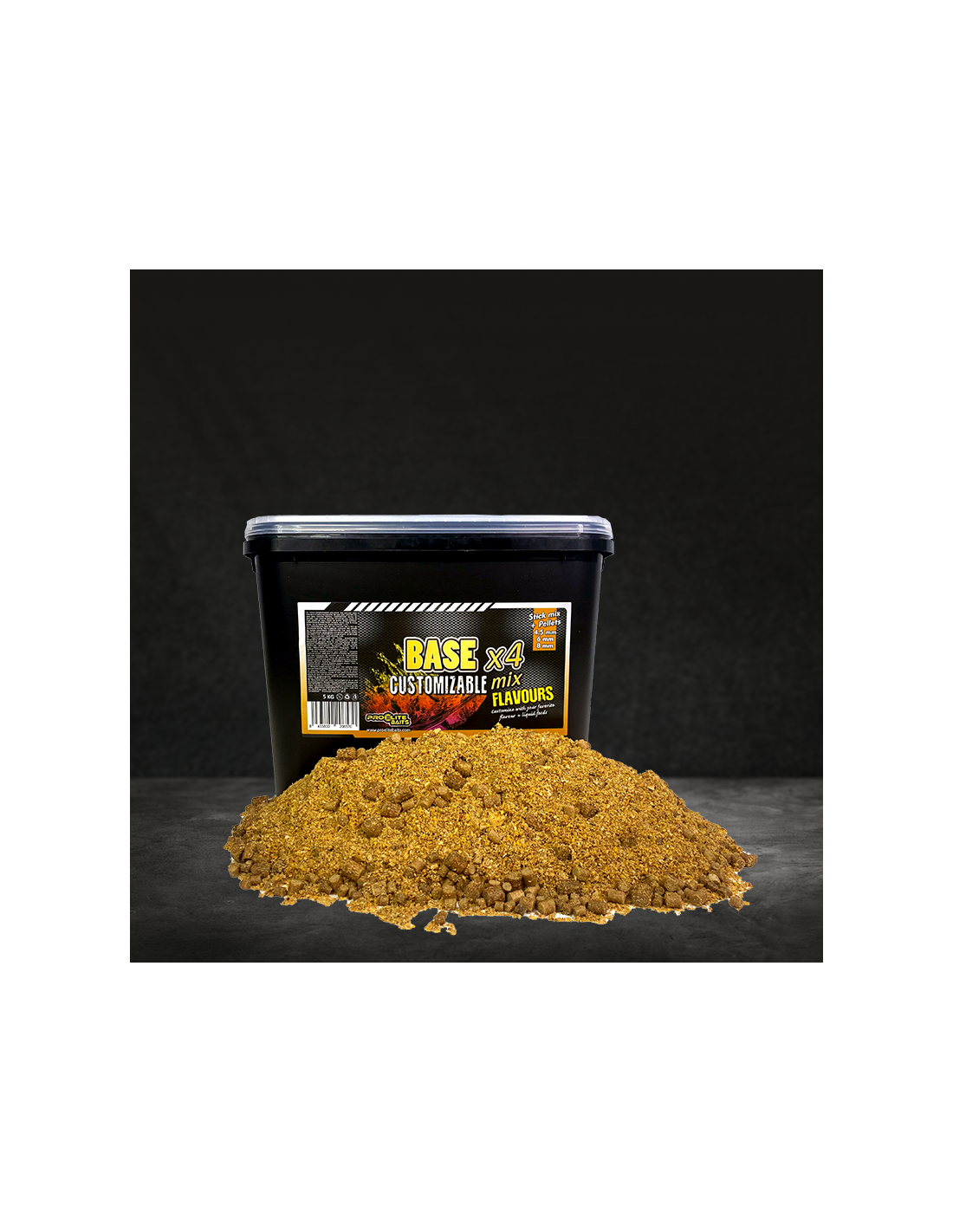 Presentamos nuestra Base x4 Mix Customizable, elaborada con una base de harinas y pellets en 4, 6 y 8 mm ademas de estimulantes del apetito para conseguir una base de harina de cebado con una granulometria gruesa y sin aroma para poder customizar al gusto del pescador mas exquisito.