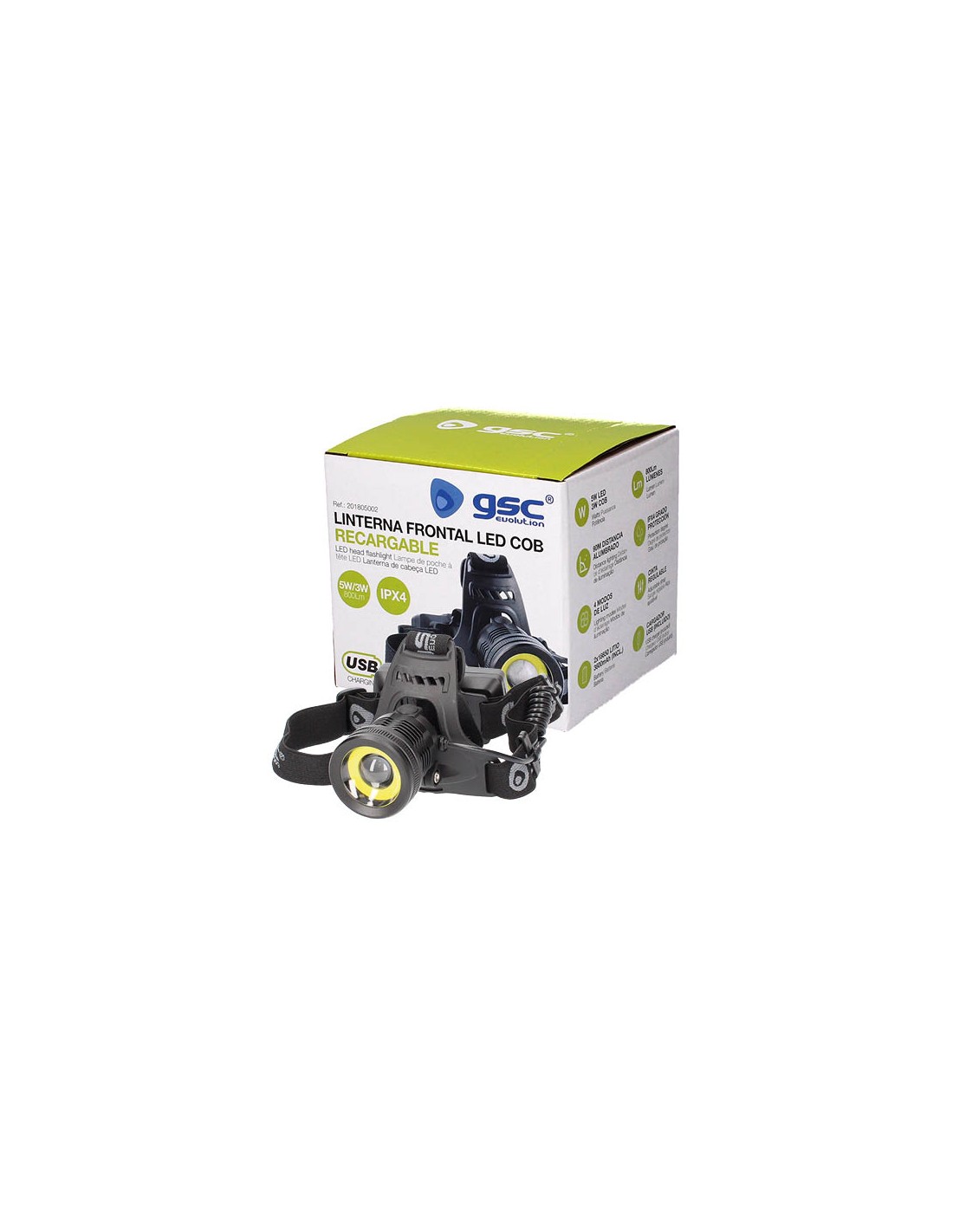 Con : Cabezal abatible, objetivo con zoom y cinta regulable