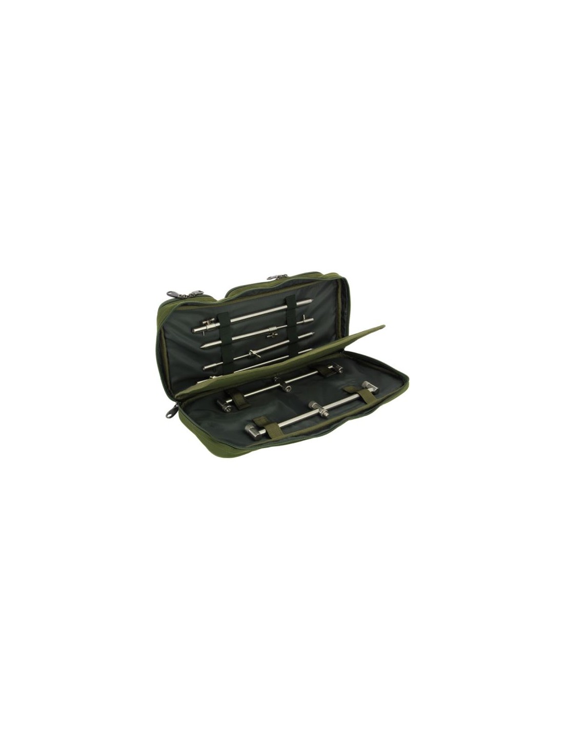 Estuche completamente nuevo y mejorado para horquillas, barras y alarmas. El estuche está equipado con dos bolsillos exteriores espaciosos, adecuados para alarmas, osciladores y escuchas telefónicas, posiblemente baterías y algunos artículos pequeños. El estuche está dividido de manera inteligente y práctica en el interior por una partición sólida. que evita daños a las piezas individuales entre ellas, y para la máxima seguridad de las barras y listones insertados, aquí se cosen gomas de fijación y cintas de velcro.