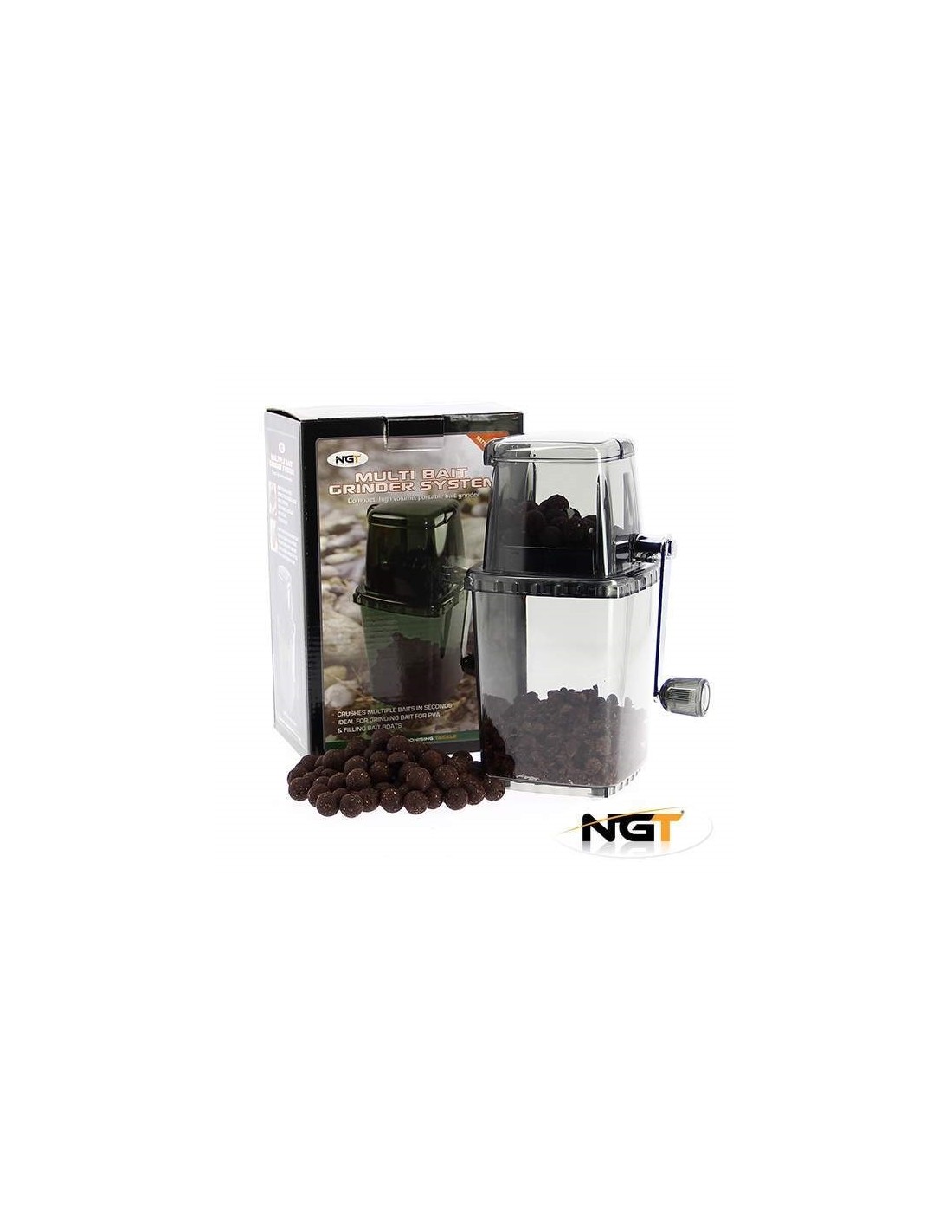 Un producto innovador de la marca inglesa NGT. Ya no tendrá que molestarse en triturar boilies y pellets con trituradoras corrientes, con las que no sólo es un proceso largo, sino que además le duelen increíblemente las manos después de una larga trituración. Este fantástico triturador de boilies hará su trabajo por usted no sólo de forma rápida y eficaz, sino sobre todo sin el esfuerzo innecesario que supone triturar con trituradoras convencionales. Sólo tiene que abrir la tapa del triturador, verter los boilies o las chufas, girar lentamente la manivela varias veces y listo. La herramienta perfecta para hacer mezclas para bolsas y medias de PVA, mezclas para cebos de cohetes o simplemente un puñado de cebos irresistibles. La picadora hará su trabajo rápida y eficazmente.